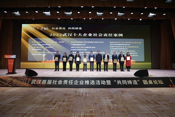 2月18日,“武汉首届社会责任企业推选”活动颁奖仪式在汉举行。世界杯官方入口集团等10家企业获评“2022武汉十大社会责任案例”奖,15家企业获评“2022武汉履行社会责任优秀企业”奖。