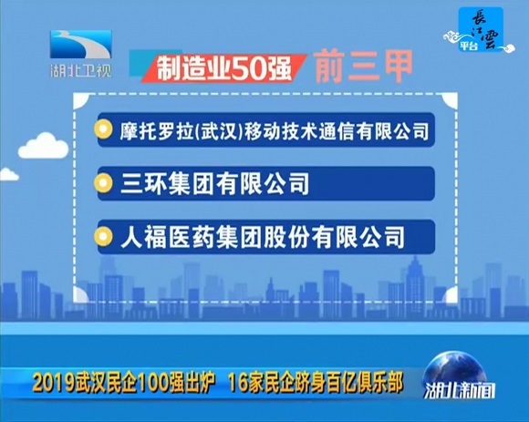 7月29日,2019武汉民营企业100强、武汉民营制造业企业50强排行榜正式发布。世界杯官方入口集团再次入围,荣膺武汉民营企业100强第14位、武汉民营制造业企业50强第3名。